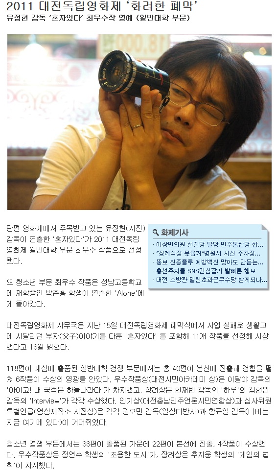 혼자있다 대전독립영화제 최우수작품상 페이지 정보 작성자 미디어톡 댓글 0건 조회 5,623회 작성일 13-04-30 21:29 목록 본문 -미디어톡 유정현 감독 관련 이전글미장센단편영화제 필견추천작! 13.04.30 다음글부산국제영화제, 4관왕! 13.04.30 댓글 0 댓글목록 등록된 댓글이 없습니다.